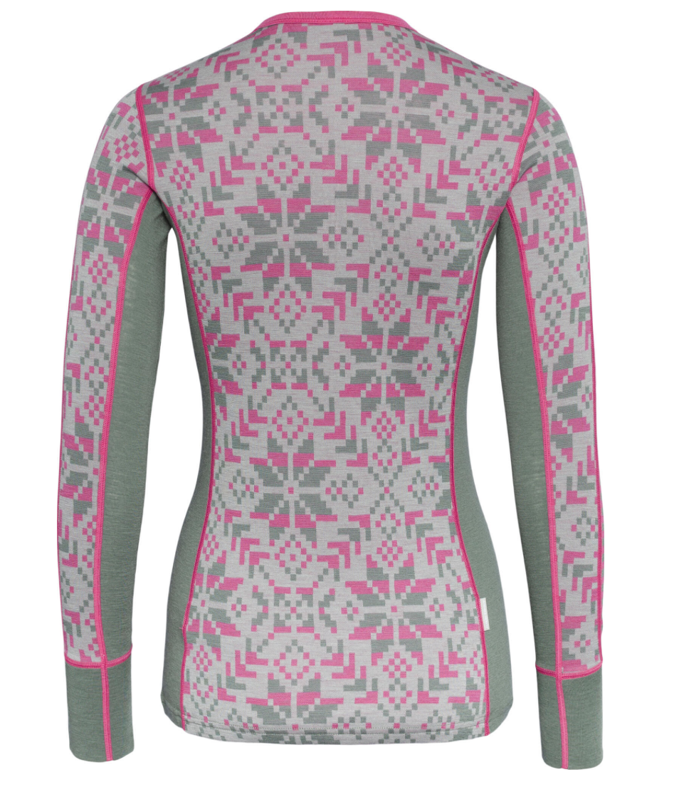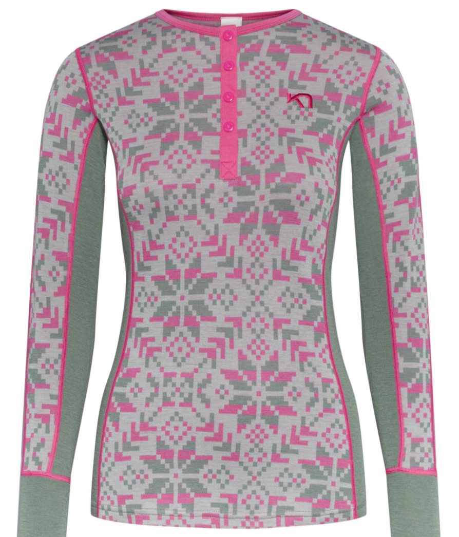 Kari Traa Else Langærmet er en baselayer-trøje med en tætsiddende pasform, lavet af 100% merinould. Vi har givet det klassiske norske mønster et moderne twist for at skabe en stilfuld og funktionel trøje, der holder dig varm, giver fuld bevægelsesfrihed og føles blød mod huden. Else er hurtigtørrende, åndbar og naturligt lugtafvisende. Derudover har den strategisk placeret strækzoner for maksimal komfort.
